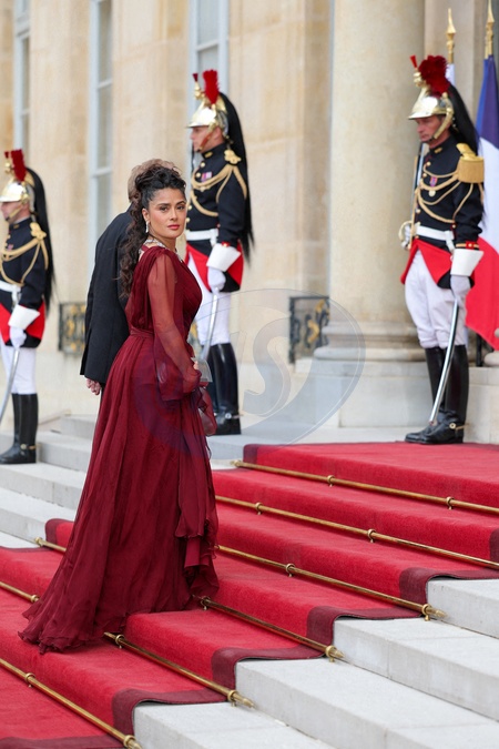 Salma Hayek et son mari François-Henri Pinault - Arrivée des invités au dîner d'Etat en l'honneur du président chinois Xi Jinping et de sa femme la Première Dame Peng Liyuan au palais présidentiel de l'Elysée à Paris, France, le 6 mai 2024. © Cyril Moreau/Bestimage Celebs arrive to attend an official state dinner as part of the Chinese president's two-day state visit to France, at the Presidential Elysee Palace in Paris, France, on May 6, 2024.