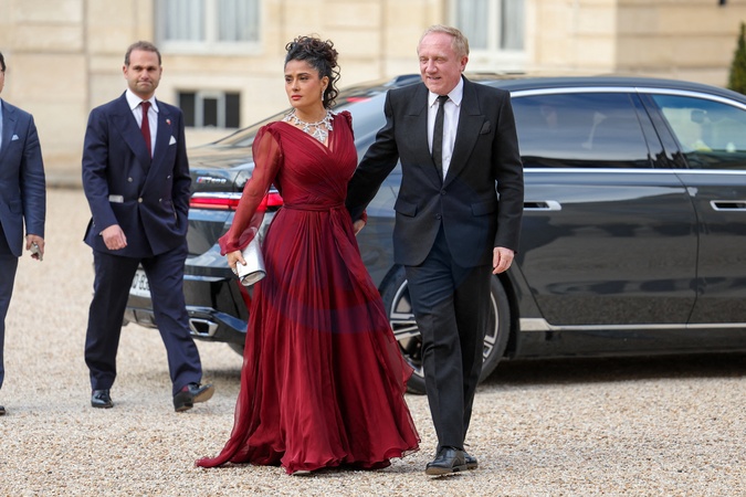 Salma Hayek et son mari François-Henri Pinault - Arrivée des invités au dîner d'Etat en l'honneur du président chinois Xi Jinping et de sa femme la Première Dame Peng Liyuan au palais présidentiel de l'Elysée à Paris, France, le 6 mai 2024. © Cyril Moreau/Bestimage Celebs arrive to attend an official state dinner as part of the Chinese president's two-day state visit to France, at the Presidential Elysee Palace in Paris, France, on May 6, 2024.