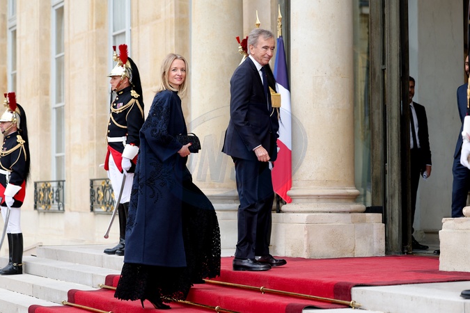 Delphine Arnault et son père Bernard Arnault - Arrivée des invités au dîner d'Etat en l'honneur du président chinois Xi Jinping et de sa femme la Première Dame Peng Liyuan au palais présidentiel de l'Elysée à Paris, France, le 6 mai 2024. © Cyril Moreau/Bestimage Celebs arrive to attend an official state dinner as part of the Chinese president's two-day state visit to France, at the Presidential Elysee Palace in Paris, France, on May 6, 2024.