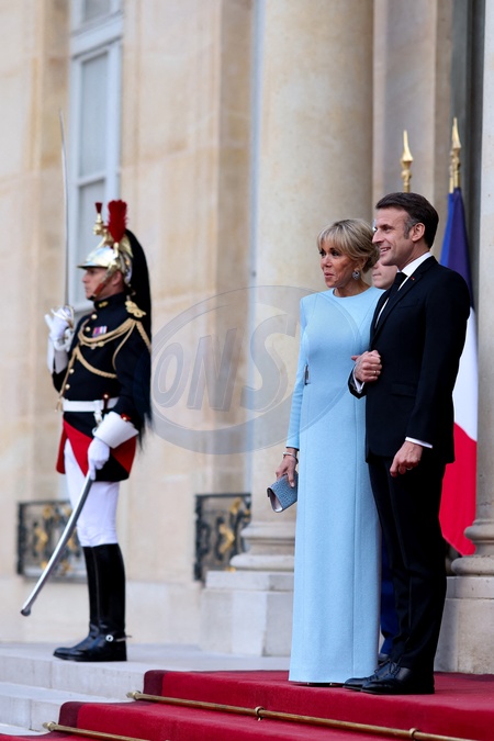 La Première Dame Brigitte Macron et son mari le président Emmanuel Macron - Arrivée des invités au dîner d'Etat en l'honneur du président chinois Xi Jinping et de sa femme la Première Dame Peng Liyuan au palais présidentiel de l'Elysée à Paris, France, le 6 mai 2024. © Cyril Moreau/Bestimage Celebs arrive to attend an official state dinner as part of the Chinese president's two-day state visit to France, at the Presidential Elysee Palace in Paris, France, on May 6, 2024.