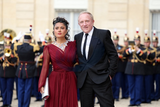 Salma Hayek et son mari François-Henri Pinault - Arrivée des invités au dîner d'Etat en l'honneur du président chinois Xi Jinping et de sa femme la Première Dame Peng Liyuan au palais présidentiel de l'Elysée à Paris, France, le 6 mai 2024. © Cyril Moreau/Bestimage Celebs arrive to attend an official state dinner as part of the Chinese president's two-day state visit to France, at the Presidential Elysee Palace in Paris, France, on May 6, 2024.