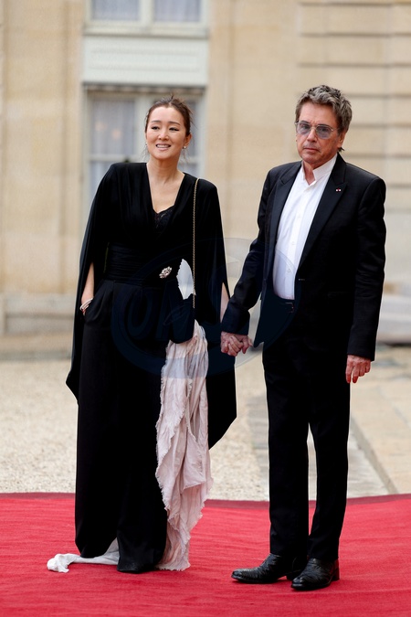 Gong Li et son mari Jean-Michel Jarre - Arrivée des invités au dîner d'Etat en l'honneur du président chinois Xi Jinping et de sa femme la Première Dame Peng Liyuan au palais présidentiel de l'Elysée à Paris, France, le 6 mai 2024. © Cyril Moreau/Bestimage Celebs arrive to attend an official state dinner as part of the Chinese president's two-day state visit to France, at the Presidential Elysee Palace in Paris, France, on May 6, 2024.