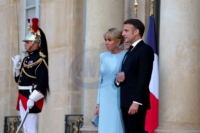 La Première Dame Brigitte Macron et son mari le président Emmanuel Macron - Arrivée des invités au dîner d'Etat en l'honneur du président chinois Xi Jinping et de sa femme la Première Dame Peng Liyuan au palais présidentiel de l'Elysée à Paris, France, le 6 mai 2024. © Cyril Moreau/Bestimage Celebs arrive to attend an official state dinner as part of the Chinese president's two-day state visit to France, at the Presidential Elysee Palace in Paris, France, on May 6, 2024.