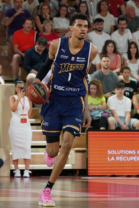 Info - NBA: Victor Wembanyama désigné "rookie de l'année", une première pour un Français - Victor Wembanyama (Boulogne Metropolitans 92) - Monaco corrige Boulogne-Levallois lors du match 1 de basket de la finale de Betclic Elite à Monaco le 10 juin 2023. Quel départ ! Lors du match 1 de la finale de Betclic Elite, Monaco, leader de la saison régulière et demi-finaliste de l'Euroligue, a écrasé les Métropolitans de Boulogne-Levallois (87-64), samedi à domicile. Monaco corrects Boulogne-Levallois during match 1 of the Betclic Elite basketball final in Monaco on June 10, 2023. What a start! In match 1 of the Betclic Elite final, Monaco, regular season leader and Euroleague semi-finalist, crushed the Metropolitans of Boulogne-Levallois (87-64), Saturday at home.