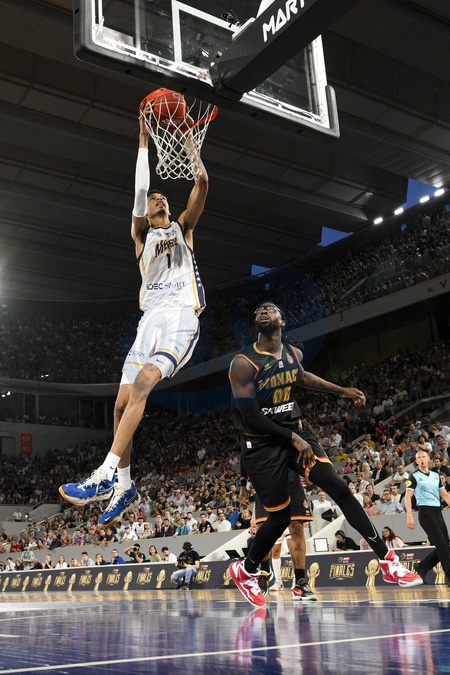 Finale du Championnat de France de basket-ball Elite Betclic à Roland Garros entre les Boulogne-Levallois Metropolitans 92 et Monaco sur le Court central Philippe Chatrier à Roland Garros