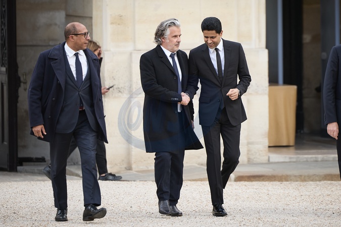 Philippe Diallo, Vincent Labrune, Nasser al-Khelaïfi - Arrivée des invités au dîner d'Etat en l'honneur du président chinois Xi Jinping et de sa femme la Première Dame Peng Liyuan au palais présidentiel de l'Elysée à Paris, France, le 6 mai 2024. © Cyril Moreau/Bestimage Celebs arrive to attend an official state dinner as part of the Chinese president's two-day state visit to France, at the Presidential Elysee Palace in Paris, France, on May 6, 2024.