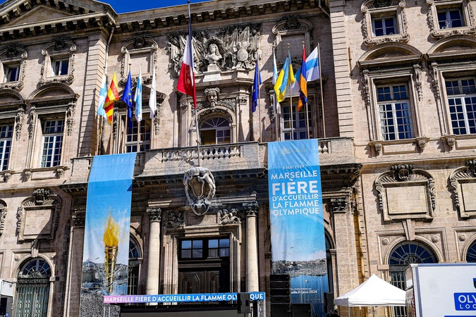 La mairie de Marseille prête à accueillir la flamme olympique des JO de Paris 2024, à Marseille, France, le 7 mai 2024. © Sandrine Thesillat/Panoramic/Bestimage Atmosphere in Marseille, France, on May 7, 2024, the day before welcoming the Olympic Flame of the Paris 2024 Olympics