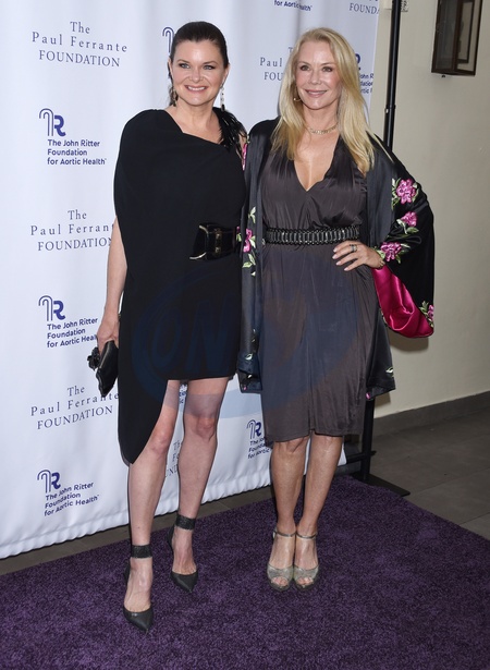 Heather Tom and Katherine Kelly Lang arriving to the 2024 John Ritter Foundation for Aortic Health: An Evening From the Heart Annual Gala held at the Sunset Room in Hollywood, CA on May 9, 2024. © Janet Gough / AFF-USA.COM
