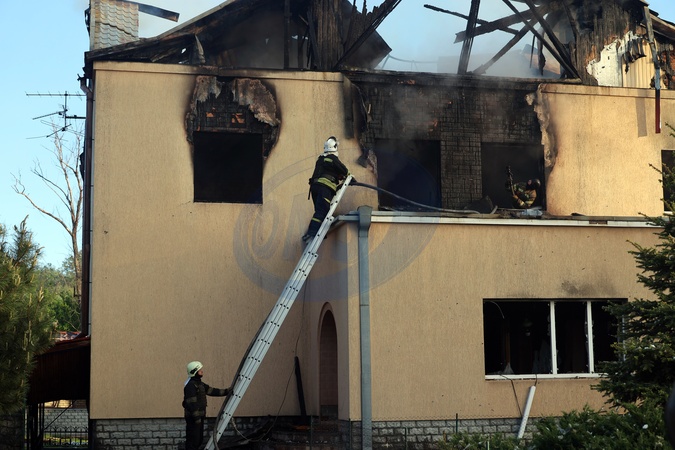 KHARKIV, UKRAINE - MAY 10, 2024 - Rescuers are seen at work at a house after a Russian missile attack, Kharkiv, northeastern Ukraine. On the night of 10 May, Russian invaders attacked Kharkiv with an S-300 missile. A child aged 11 and a 72-year-old woman were injured as a result of the attack on the private sector. Three houses were on fire, two of them were destroyed and one was damaged. In total, 26 buildings were destroyed, and more than 300 windows were smashed., Credit:Vyacheslav Madiyevskyy / Avalon
