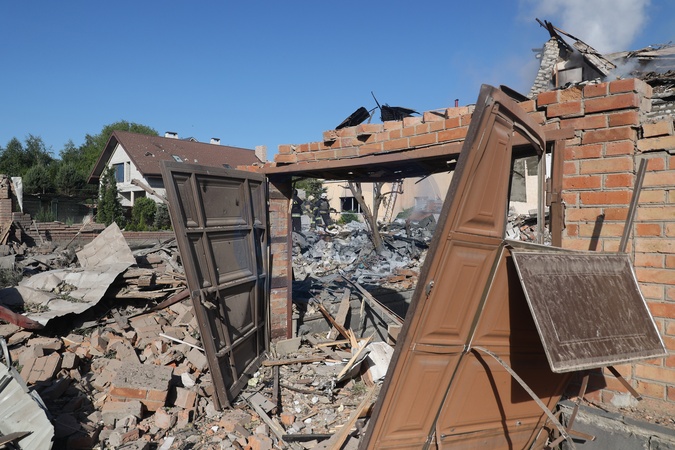KHARKIV, UKRAINE - MAY 10, 2024 - The gates are damaged after a Russian missile attack, Kharkiv, northeastern Ukraine. On the night of 10 May, Russian invaders attacked Kharkiv with an S-300 missile. A child aged 11 and a 72-year-old woman were injured as a result of the attack on the private sector. Three houses were on fire, two of them were destroyed and one was damaged. In total, 26 buildings were destroyed, and more than 300 windows were smashed., Credit:Vyacheslav Madiyevskyy / Avalon