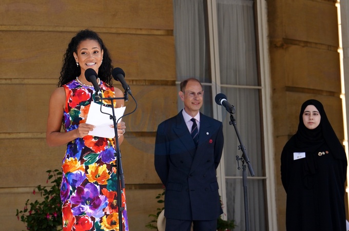 Vick Hope speaks during the Duke of Edinburgh's Gold Award presentations, in the garden of Buckingham Palace, London. Picture date: Friday May 10, 2024. ., Credit:Avalon.red / Avalon