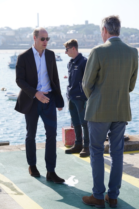 The Prince of Wales, known as the Duke of Cornwall when in Cornwall, during a visit to St. Mary's Harbour, the maritime gateway to the Isles of Scilly, to meet representatives from local businesses operating in the area. Picture date: Friday May 10, 2024., Credit:Avalon.red / Avalon