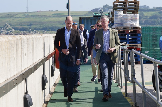 The Prince of Wales, known as the Duke of Cornwall when in Cornwall, during a visit to St. Mary's Harbour, the maritime gateway to the Isles of Scilly, to meet representatives from local businesses operating in the area. Picture date: Friday May 10, 2024., Credit:Avalon.red / Avalon