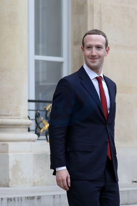 Mark Zuckerberg, PDG de Facebook, rencontre le président de la République au palais de l'Elysée à Paris