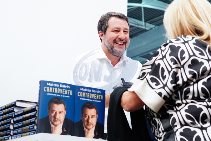 SalTo, Italian Deputy Prime Minister Matteo Salvini signs his book, Controvento. Turin, Italy 10 May 2024