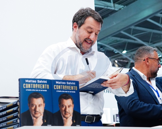 SalTo, Italian Deputy Prime Minister Matteo Salvini signs his book, Controvento. Turin, Italy 10 May 2024