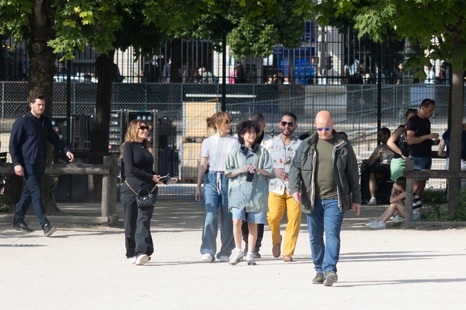 Exclusif - Jennifer Lopez sort de l'hôtel La Réserve pour aller dans un magasin de miroir renommé avant de profite des jardins parisiens avec Loren Ridinger, Benny Medina et sa fille, Emme à Paris, France, le 10 mai 2024. Exclusive - Jennifer Lopez leaves the La Réserve hotel to go to a renowned mirror store before enjoying the Parisian gardens with Loren Ridinger, Benny Medina and her daughter, Emme in Paris, France, on May 10, 2024.