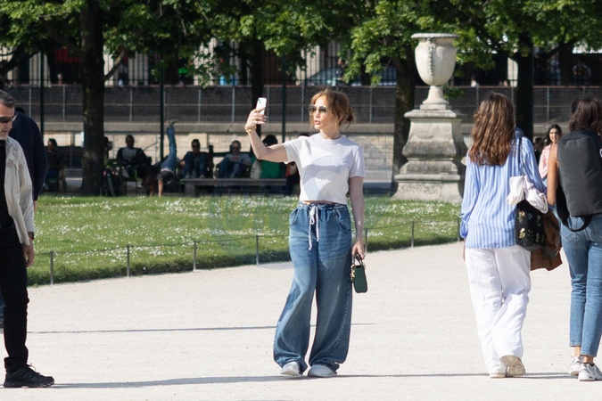 Jennifer Lopez opuszcza hotel La Réserve, aby udać się do słynnego sklepu z lustrami, a następnie cieszyć się paryskimi ogrodami z Lorenem Ridingerem, Bennym Mediną i jej córką Emme w Paryżu