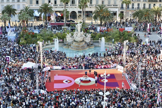 Charles Berling dernier porteur de la flamme olympique des JO de Paris 2024 dans le Var allume la vasque à Toulon