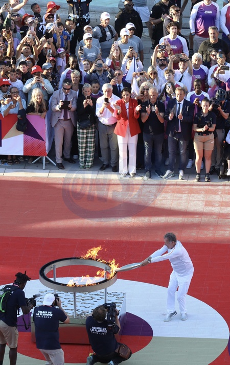 Charles Berling dernier porteur de la flamme olympique des JO de Paris 2024 dans le Var allume la vasque à Toulon