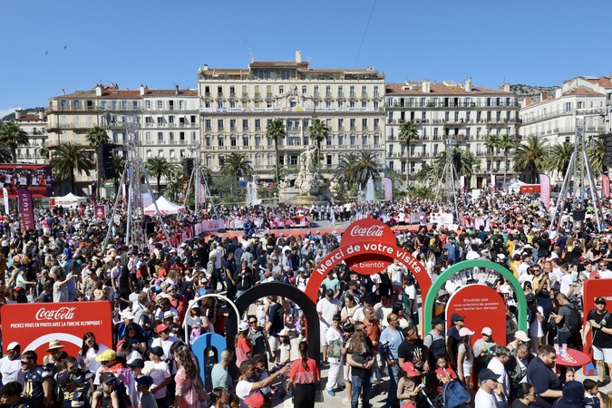 Charles Berling dernier porteur de la flamme olympique des JO de Paris 2024 dans le Var allume la vasque à Toulon