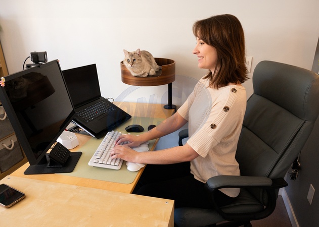 Pictures must credit: Quantum Mango A work from home device to stop pet cats interfering with work has been unveiled. It's a bed-style nest which sits on a desk and gives a pet a birds eye view of the workplace. And it is designed to stop inquisitive cats prowling across or settling down on a keyboard or note pad. And the device, launched on crowd funding site Kickstarter, raised over $250,000 USD / €232.800 euros from more than 2,100 backers, substantially exceeding its initial $10,000 USD / €9.300 euros funding target. Called the Desk Nest, by US firm Quantum Mango, it is the brainchild of company founder Scott Salzman. He said it was designed for pet parents who work from home, as well as gamers and students, enabling them to work without interruptions. Picture supplied by JLPPA