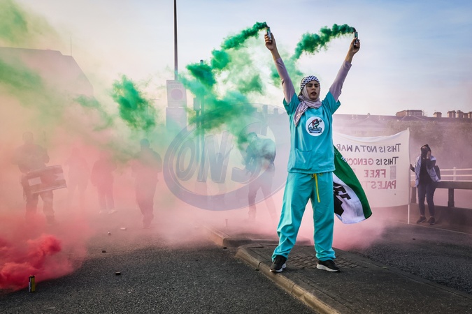Waterloo Bridge blocked by Palestine Pritest, London, UK