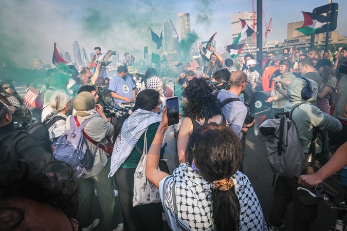 Waterloo Bridge blocked by Palestine Pritest, London, UK