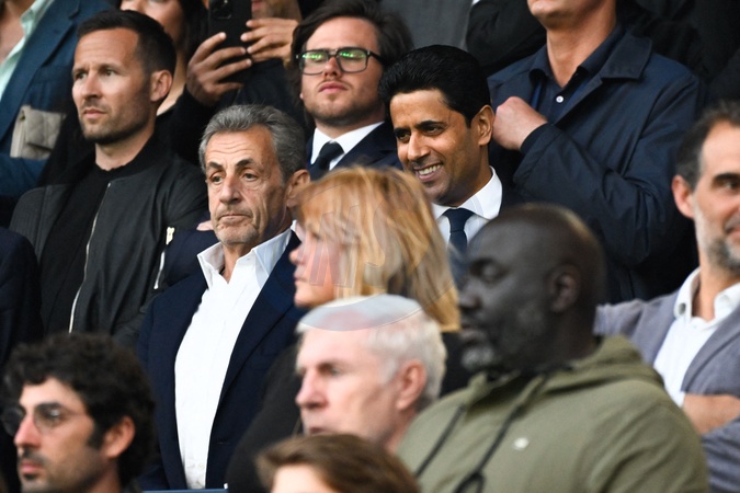 Nicolas Sarkozy ( French politician who served as French President ) and Nasser Al Khelaifi ( president PSG ) during the Ligue 1 match between Paris Saint Germain and Toulouse FC at Parc Des Princes on May 12, 2024 in Paris, France.