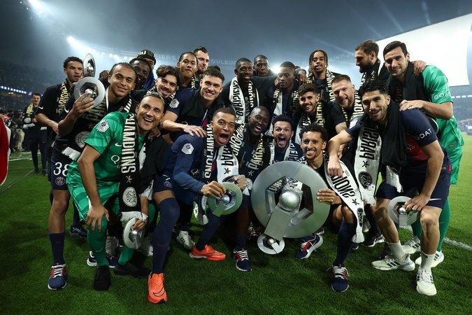 L'équipe du PSG - Dernier match de Kylian Mbappé (25 ans) avec le PSG en Ligue 1 Uber Eats lors de la rencontre "PSG-Toulouse" (1-3) au Parc des Princes à Paris le 12 mai 2024. © Franck Fife / Pool /Bestimage Last match of Kylian Mbappé (25 years old) with PSG in Ligue 1 Uber Eats during the "PSG-Toulouse" meeting (1-3) at the Parc des Princes in Paris on May 12, 2024