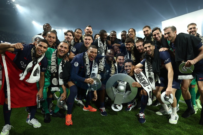 L'équipe du PSG - Dernier match de Kylian Mbappé (25 ans) avec le PSG en Ligue 1 Uber Eats lors de la rencontre "PSG-Toulouse" (1-3) au Parc des Princes à Paris le 12 mai 2024. © Franck Fife / Pool /Bestimage Last match of Kylian Mbappé (25 years old) with PSG in Ligue 1 Uber Eats during the "PSG-Toulouse" meeting (1-3) at the Parc des Princes in Paris on May 12, 2024