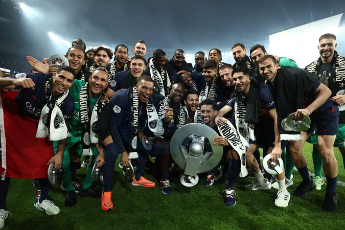L'équipe du PSG - Dernier match de Kylian Mbappé (25 ans) avec le PSG en Ligue 1 Uber Eats lors de la rencontre "PSG-Toulouse" (1-3) au Parc des Princes à Paris le 12 mai 2024. © Franck Fife / Pool /Bestimage Last match of Kylian Mbappé (25 years old) with PSG in Ligue 1 Uber Eats during the "PSG-Toulouse" meeting (1-3) at the Parc des Princes in Paris on May 12, 2024