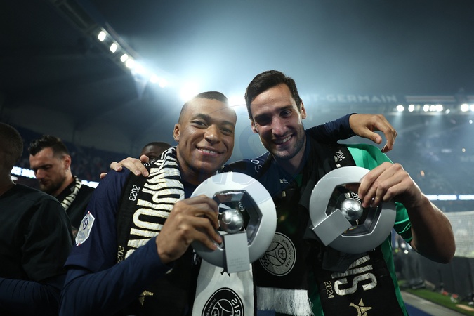 Kylian Mbappé, Sergio Rico - Dernier match de Kylian Mbappé (25 ans) avec le PSG en Ligue 1 Uber Eats lors de la rencontre "PSG-Toulouse" (1-3) au Parc des Princes à Paris le 12 mai 2024. © Franck Fife / Pool /Bestimage Last match of Kylian Mbappé (25 years old) with PSG in Ligue 1 Uber Eats during the "PSG-Toulouse" meeting (1-3) at the Parc des Princes in Paris on May 12, 2024