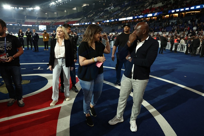 Fayza Lamari et Wilfrid Mbappé (parents de Kylian Mbappé) - Dernier match de Kylian Mbappé (25 ans) avec le PSG en Ligue 1 Uber Eats lors de la rencontre "PSG-Toulouse" (1-3) au Parc des Princes à Paris le 12 mai 2024. © Franck Fife / Pool /Bestimage Last match of Kylian Mbappé (25 years old) with PSG in Ligue 1 Uber Eats during the "PSG-Toulouse" meeting (1-3) at the Parc des Princes in Paris on May 12, 2024