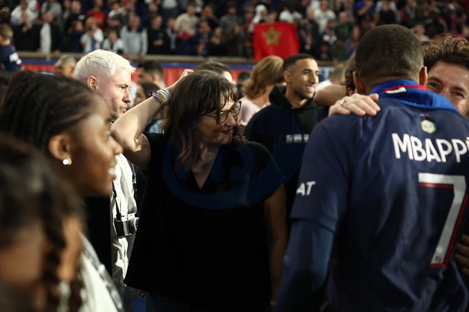 Kylian Mbappé avec sa mère Fayza Lamari et son avocate Delphine Verheyden - Dernier match de Kylian Mbappé (25 ans) avec le PSG en Ligue 1 Uber Eats lors de la rencontre "PSG-Toulouse" (1-3) au Parc des Princes à Paris le 12 mai 2024. © Franck Fife / Pool /Bestimage Last match of Kylian Mbappé (25 years old) with PSG in Ligue 1 Uber Eats during the "PSG-Toulouse" meeting (1-3) at the Parc des Princes in Paris on May 12, 2024