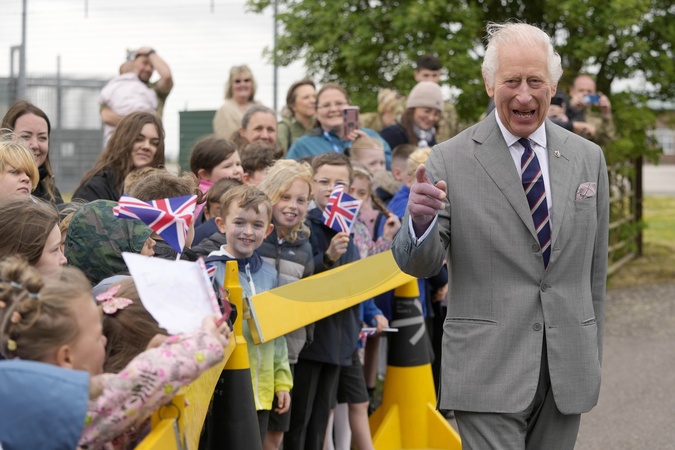 Britain's King Charles III arrives at the Army Aviation Centre in Middle Wallop, England, Monday, May 13, 2024. King Charles III will officially hand over the role of Colonel-in-Chief of the Army Air Corps to Prince William, The Prince of Wales., Credit:Kin Cheung / Avalon