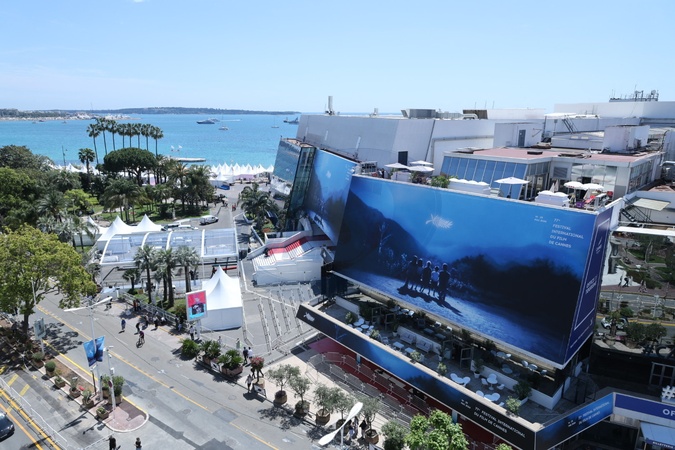 Rozkładanie czerwonego dywanu przed pałacem, dzień przed otwarciem 77. Międzynarodowego Festiwalu Filmowego w Cannes