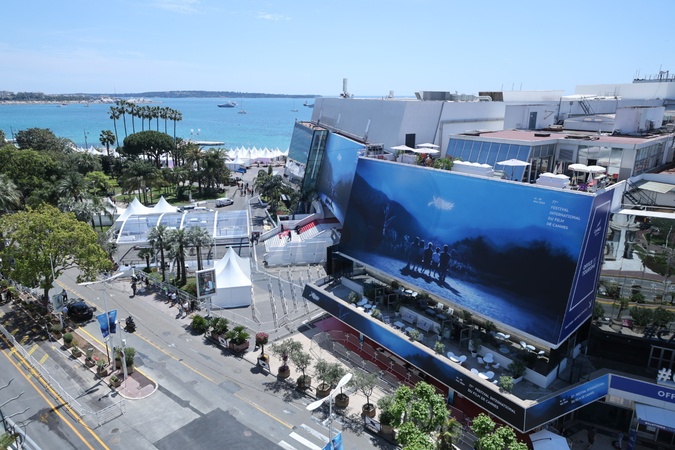 Rozkładanie czerwonego dywanu przed pałacem, dzień przed otwarciem 77. Międzynarodowego Festiwalu Filmowego w Cannes