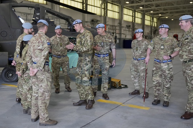 Britain's Prince William speaks to service personal at the Army Aviation Centre in Middle Wallop, England, Monday, May 13, 2024. King Charles III officially handed over the role of Colonel-in-Chief of the Army Air Corps to Prince William, The Prince of Wales., Credit:Kin Cheung / Avalon