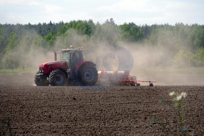 CHERKASY REGION, UKRAINE - MAY 09, 2024 - Tractor is seen in the field during soybean sowing, Cherkasy region, central Ukraine., Credit:Yulii Zozulia / Avalon