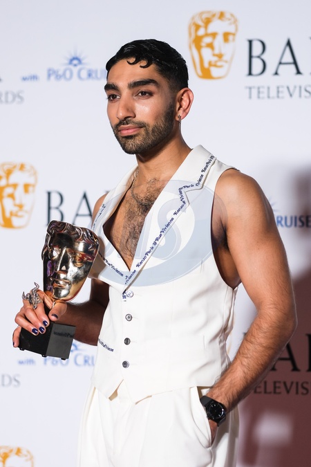 Mawaan Rizwan poses with the BAFTA for Male Comedy Performance photographed backstage in the press room BAFTA TV Awards with P&O Cruises 2024 on Sunday 12 May 2024 at Royal Festival Hall, London. ., Credit:Julie Edwards / Avalon