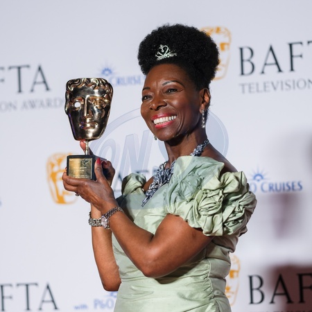 Floella Benjamin poses with her BAFTA Fellowship photographed backstage in the press room BAFTA TV Awards with P&O Cruises 2024 on Sunday 12 May 2024 at Royal Festival Hall, London. ., Credit:Julie Edwards / Avalon