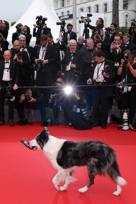 M - Le chien du film "Anatomie d'une chute" lors de la montée des marches du film « Le deuxième acte » pour la cérémonie d’ouverture du 77ème Festival International du Film de Cannes