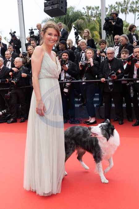Laura Martin et Messi, le chien du film "Anatomie d'une chute", lors de la montée des marches du film «Le deuxième acte» pour la cérémonie d'ouverture du 77ème Festival International du Film de Cannes. Ce dernier aura sa propre émission sur France Télévisions et TV5 Monde. Pendant le festival de Cannes, il interviewera des célébrités avec la voix de Raphaël Mezrahi. Le 14 mai 2024 © Borde / Bestimage Laura Martin and Messi, the dog of the film "Anatomy of a fall", during the climb of the steps of the film «The second act» for the opening ceremony of the 77th Cannes International Film Festival. The latter will have its own show on France Télévisions and TV5 Monde. During the Cannes Film Festival, he will interview celebrities with the voice of Raphaël Mezrahi. On may 14th 2024