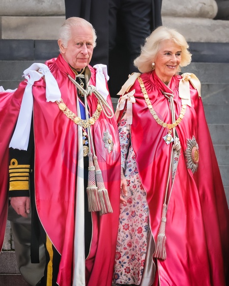 King Charles and Queen Camilla exit Service for the Order of the British Empire, London, UK