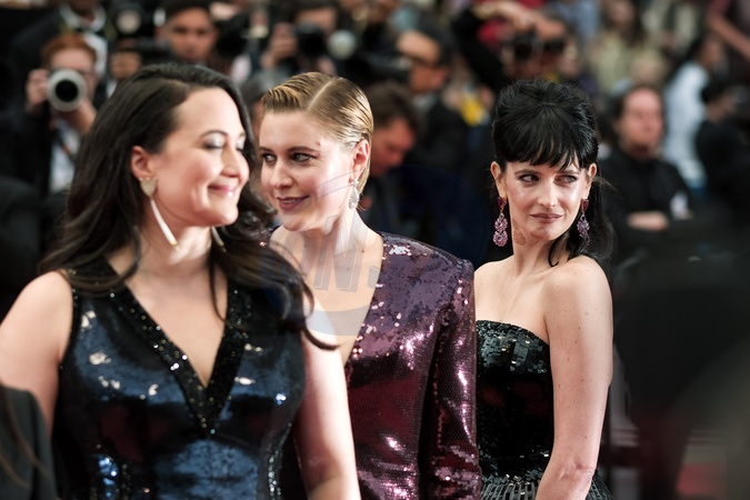 Lily Gladstone, Greta Gerwig and Eva Green arrives on the Red Carpet for the opening night for the film The Second Act during the 77th Festival de Cannes on Tuesday 14 May 2024 at Le Palais des festivals, Cannes. Shoe detail - Silver high heel sandals., Credit:Julie Edwards / Avalon