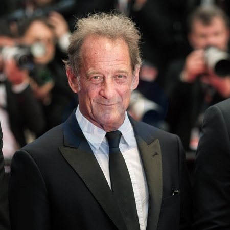 Vincent Lindon arrives on the Red Carpet for the opening night for the film The Second Act during the 77th Festival de Cannes on Tuesday 14 May 2024 at Le Palais des festivals, Cannes. Shoe detail - Silver high heel sandals., Credit:Julie Edwards / Avalon