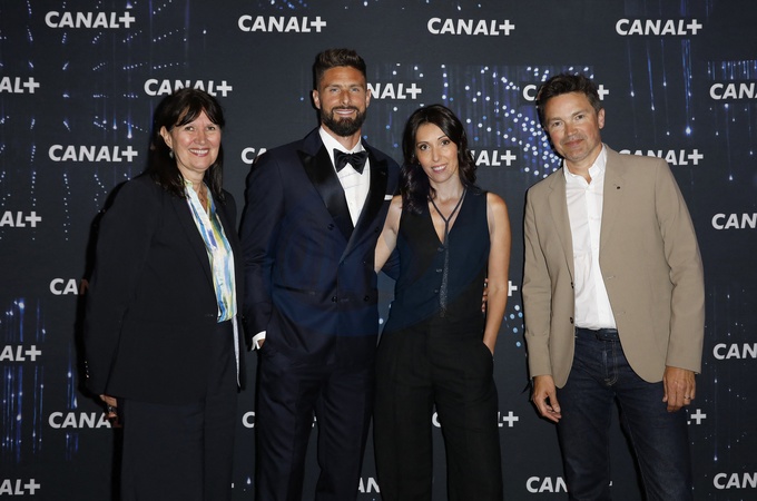 Exclusif - Christine Cauquelin (directrice des unités de programmes et chaînes documentaires de Canal+), Olivier Giroud et sa femme Jennifer, Thomas Sénécal (Directeur des sports de Canal+) - Avant-première du documentaire "Giroud" à l'Elysée Biarritz à Paris le 14 mai 2024. Le document inédit Giroud sera proposé dès le dimanche 26 mai sur Canal+. Une plongée dans la carrière exceptionnelle et le parcours personnel singulier et méconnu de l'un des plus grands joueurs de l'histoire du football français. Olivier Giroud a tout gagné ou presque : Coupe du Monde, Ligue des Champions, Ligue Europa, Coupe d'Angleterre, Championnat d'Italie, Ligue 1... Il est devenu en 2022 le meilleur buteur de l'histoire de l'Equipe de France ! Et pourtant, il est depuis longtemps l'un des joueurs français de premier plan les plus contestés et critiqués. Olivier Giroud vient d'officialiser son départ de l'AC Milan pour "le championnat nord-américain". © Marc Ausset-Lacroix/Bestimage Exclusive - For Germany call for price - Preview of the documentary "Giroud” at the Elysée Biarritz in Paris on May 14, 2024. The unpublished Giroud document will be available from Sunday May 26 on Canal+. A dive into the exceptional career and the singular and little-known personal journey of one of the greatest players in the history of French football. Olivier Giroud has won almost everything: World Cup, Champions League, Europa League, FA Cup, Italian Championship, Ligue 1... In 2022 he became the top scorer in the history of the Team of France ! And yet, he has long been one of the most contested and criticized leading French players. Olivier Giroud has just made his departure from AC Milan official for "the North American championship”.