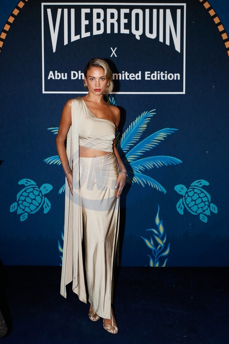 Exclusif - Rose Bertram à la soirée de lancement de la collection capsule "Vilebrequin x Abu Dhabi limited édition" à la plage Vilebrequin (plage ondine) lors du 77ème Festival International du Film de Cannes le 14 mai 2024. Hier soir, sur La Plage Vilebrequin L'Ondine idéalement située en face du Carlton, débutait le Festival de Cannes de la Maison Vilebrequin en collaboration avec Experience Abu Dhabi. Après la retransmission en direct de la célèbre montée des marches, se sont pressés une centaine d'influenceurs, journalistes et personnalités venus du monde entier pour se prêter au jeu du photocall. Etaient présentes les ravissantes Miss France S. Tellier, D. Leyre ou encore A. Aylies. La joyeuse bande est restée longtemps, appréciant l'atmosphère décontractée sous les tentes et malgré la pluie. La soirée a été ponctuée par l'arrivée de la sculpturale R.Strijd, N. Arida et de la mannequin S.Shaik. De nombreuses influenceuses se sont pressées à leurs côtés à l'instar de K.Amato, Lufy, C. Bobb, R.Bertrand, Noholita et Mademoisellesoph... Les hommes amateurs de la marque n'étaient pas en reste avec la présence remarquée de C.Gautier, W. Ernult, E. Tais Toi ou Tristan et ses presque 7 millions de followers... Dans une ambiance chic et fun, chacun a posé devant le mur décoré pour l'occasion du motif Vilebrequin Abu Dhabi dont on fêtait le lancement mondial de la capsule, une collection de maillots de bain et de beachwear. Une vespa, des projecteurs et ventilateurs accueillaient les festivaliers pour rappeler l'origine Tropézienne de Vilebrequin et ses liens depuis plus de cinquante ans avec le monde du cinéma. Pour l'occasion, l'univers de la Plage Vilebrequin décorée par le designer V.Darré s'était transformé en palais des « Mille et Une Nuits ». Un mobilier sobre et clair parsemé d'arbres et de plantes exotiques et illuminé par des dizaines de lanternes en moucharabieh et un ciel étoilé accueillait les invités. Plusieurs murs de l'espace reprenaient le motif Vilebrequin Abu Dhabi au palmier et tortues sur fond marine et vert aux détails dorés. La délégation d'Experience Abu Dhabi était également présente pour fêter la capsule Abu Dhabi, étroitement liée à l'ouverture de la plage située au Saadiyat Beach Club en mars dernier et customisé pour la saison par Vilebrequin et Vincent Darré. Le célèbre chef de ERTH, premier restaurant étoilé au guide Michelin à Abu Dhabi, a œuvré pendant le cocktail en proposant plusieurs mets raffinés et réinterprétés pour la soirée, accompagné de champagne et des cocktails signés de la Maison à l'effigie de la tortue. d.sakakini@vilebrequin.com contact@xavierbrunetcommunication.com La Plage Vilebrequin L'Ondine 64, boulevard de la Croisette – 06400 Cannes. Roland Herlory, CEO de Vilebrequin, a ensuite lancé les festivités avec l'arrivée de la troupe de danseurs de Manon Bouquet, tous vêtus pour l'occasion de la capsule Vilebrequin Abu Dhabi. Après la première partie de soirée sous les manettes de la DJ Miss Cecyls, ce sont les célèbres jumeaux DJ Doppleganger qui sont venus mettre le feu toute la soirée et faire danser les convives. La capsule sera disponible en juin dans sur le site Vilebrequin et une sélection de boutiques dans le monde, dont Abu Dhabi, bien sûr. Quant à la Plage Vilebrequin L'Ondine, elle reprendra dès mercredi 15 mai sa décoration pour la saison et recevra de nombreuses stars au son des musiciens de Blue Note, pour des dîners sur le thème italien Luana Belmondo et son fils, avec des incontournables de la Maison Caviar Kaspia... © Christophe Clovis/Bestimage