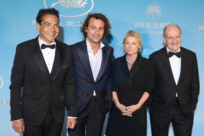 Patrick Cohen, Bertrand Chameroy, Anne-Elisabeth Lemoine, Pierre Lescure - Photocall du dîner d'ouverture du 77ème Festival International du Film de Cannes, au Carlton. Le 14 mai 2024 © Borde-Jacovides-Moreau / Bestimage Opening ceremony gala dinner of the 77th Cannes International Film Festival. On May 14th 2024